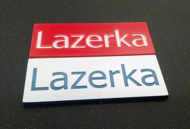 Двошаровий пластик це спеціальний матеріал, розроблений для лазерного або механічного гравіювання. Складається з двох контрастних за кольором шарів. Під час гравіювання верхній шар знімається, відкриваючи шар іншого кольору, завдяки цьому виходять чіткі, контрастні написи та зображення без потреби в додатковому фарбуванні.